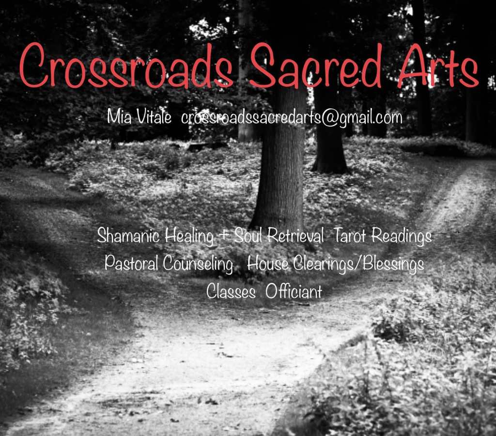 Happy Friday! We made it through another week! On Fridays, we showcase vendors who offer the wonderful wares or spectacular services at our festival. Today, we’d like to introduce you to Crossroads Sacred Arts. Crossroads Sacred Arts is devoted to the arcane arts of shamanic healing and soul retrieval, tarot readings, and various other witchy endeavors. Mia is the resident healer, tarot reader, jewelry maker, counselor, officiant, witch. She has been reading tarot professionally for six years, and reading for herself and friends for 20 years. Consultations and Conversation can begin via email at crossroadssacredarts(at)gmail.com